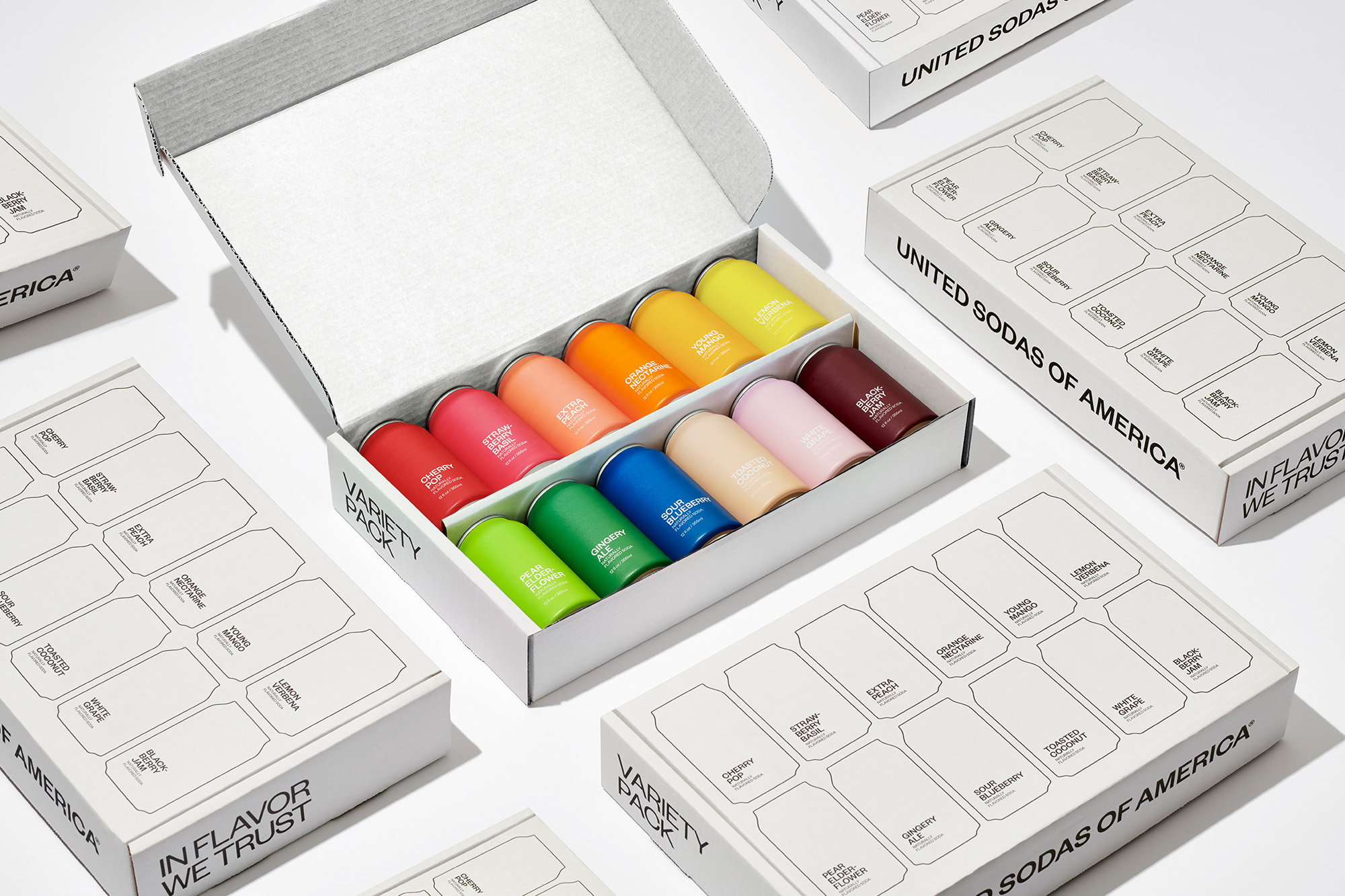 소다 종류에 따라 각 캔의 색상을 나누는 일 외로, 이 작업물에서 다양성을 표현하는 다른 요소는 없다. 단지 내용물의 정보를 전하는 작은 식별자만 존재할 뿐이며, 원료 이미지나 부가적인 그래픽 요소는 모두 배제되었다. 이로 인해 통합성(Unity)의 맥락이 두드러진다. 즉 다양성의 이미지를 12개의 색상 팔레트만으로 최소화하여 표현하는 대신, 전체로서 보여지는 통합의 이미지를 더욱 부각시킨 것이다. 여기에 ‘United Sodas of America’라는 슬로건이 화룡점정을 찍는다. 한마디로 비움의 맥락으로써 전하고자 하는 화두(다양성의 통합적 힘)의 색깔이 분명해진 작업물.