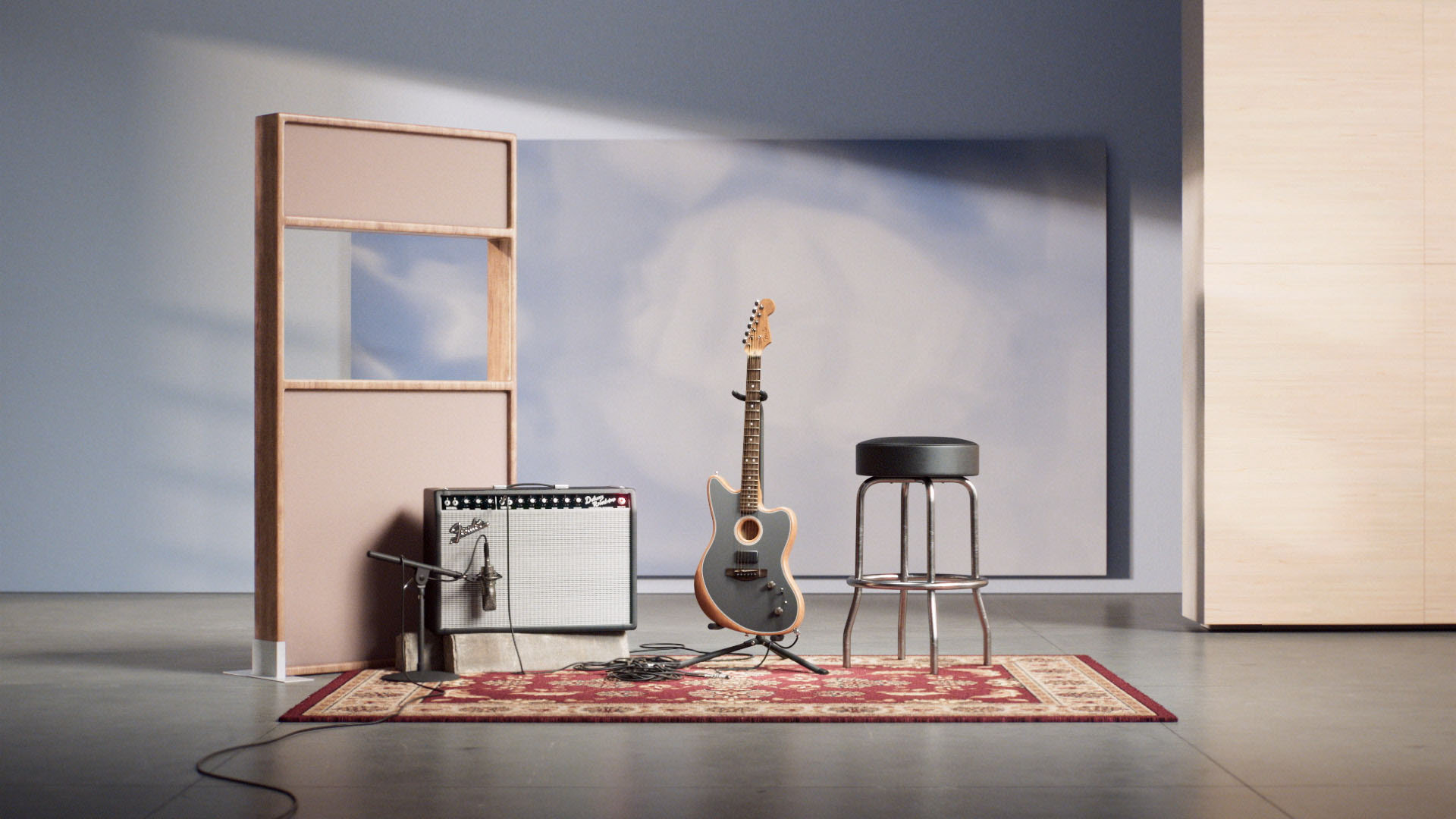 이것은 전자악기 브랜드 Fender의 신제품 프로모션 영상입니다. 음악의 선율에 따라 악기의 물리적 형상에 춤사위를 부여함으로써, 그들의 신제품에 총기 어린 시선을 갖도록 유도합니다.