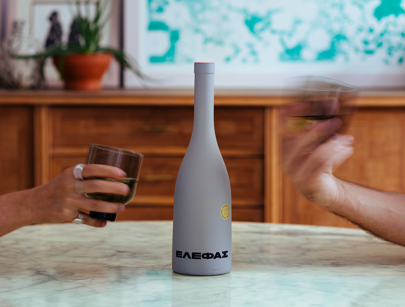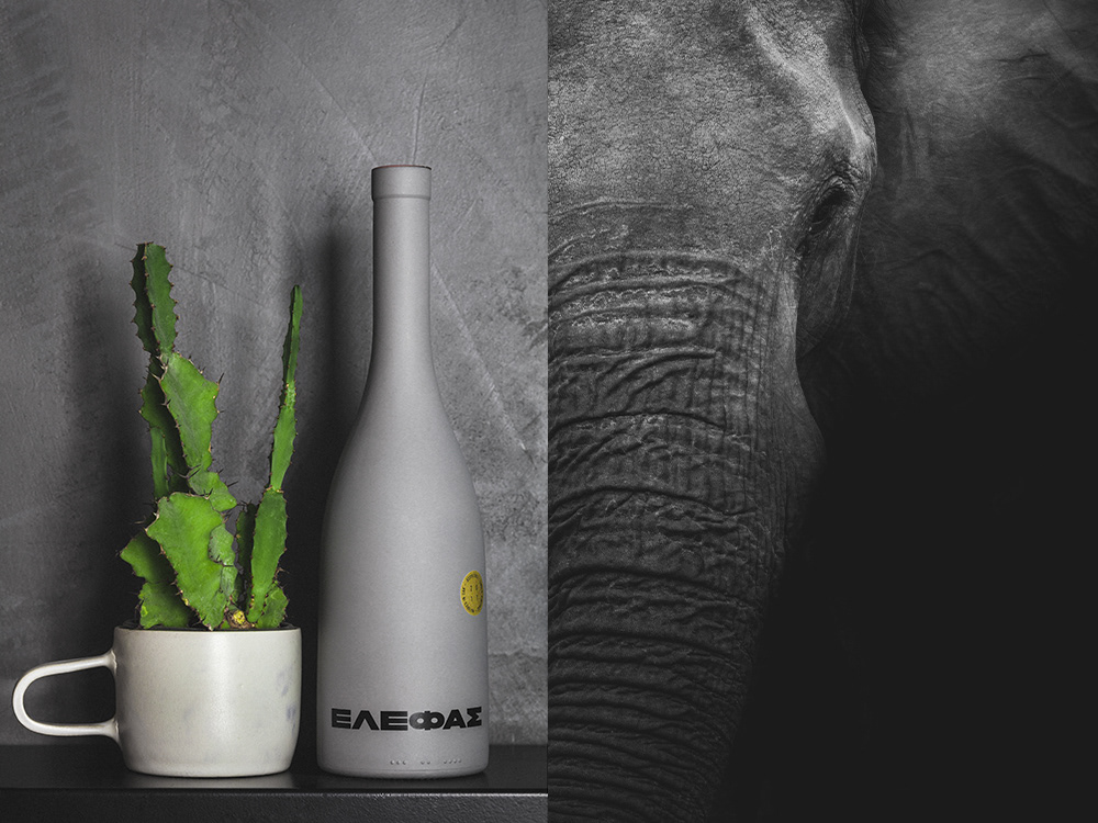 Beetroot Design이 작업한 ΕΛΕΦΑΣ Wine 패키지 디자인은 대상의 의미와 표현을 간단하면서 매끄럽게 통일시킨 작업물이다. 황금비율이라는 뜻인 그리스 알파벳 ‘Φ’으로 코끼리의 콧구멍을 표현하고, 회색 컬러와 길쭉한 병 모양은 코끼리의 모습을 매우 선명하게 표현한다. 제품이 지향하는 질료적 특징인 ’균형 잡힌 맛’과 황금비율(Φ)의 메시지 그리고 이러한 의미에 캐릭터성을 강하게 부여하는 코끼리의 모습을 하나의 패키지 안에 매끄럽게 압축시킨 작업물.